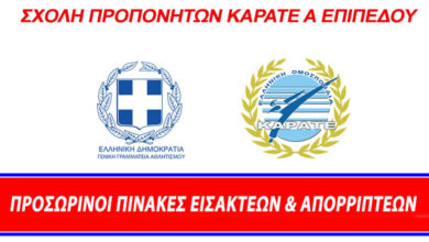 Σχολή προπονητών Α – Προσωρινοί Πίνακες Εισακτέων και Απορριπτέων